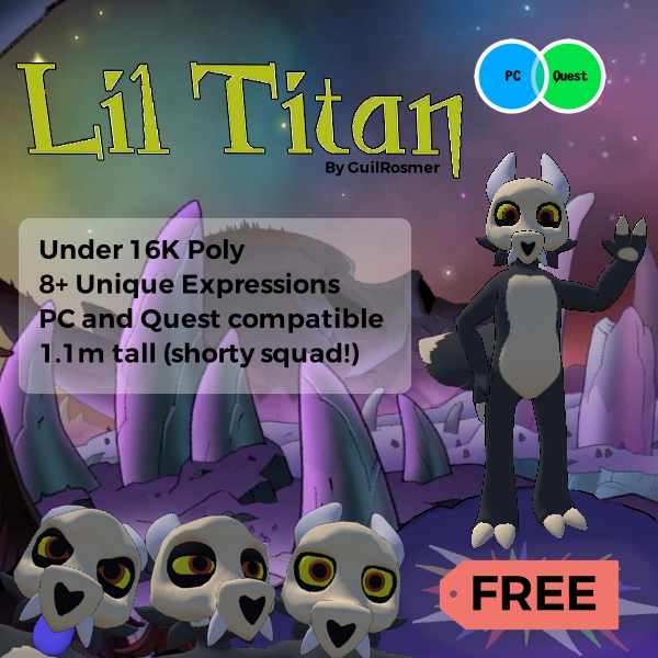 Say hello to the Lil Titan avatar base for VRChat! Inspired by everybody's favorite little tyrant and ruler of demons, King.